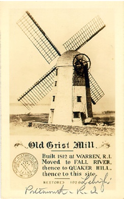 … Uncle John [Sherman] has bought a windmill in Fall River (RI) and Jonathan Sherman has contracted to take it down and move it here on his land west of the main road _ and put it up again. It was moved from Warren, to where it now stands.