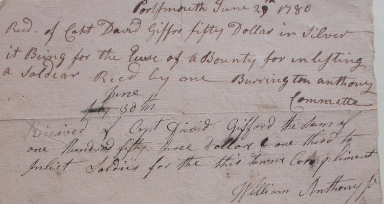 Soldier bounty – David Gifford 6/28/1780