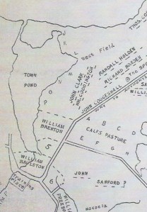 The maps in this blog show the Town Pond as mapped out at different times in Portsmouth’s History – Revolutionary War times, 1848 and as historian Edward West rendered it in the 1930s when he compiled his land grant maps.