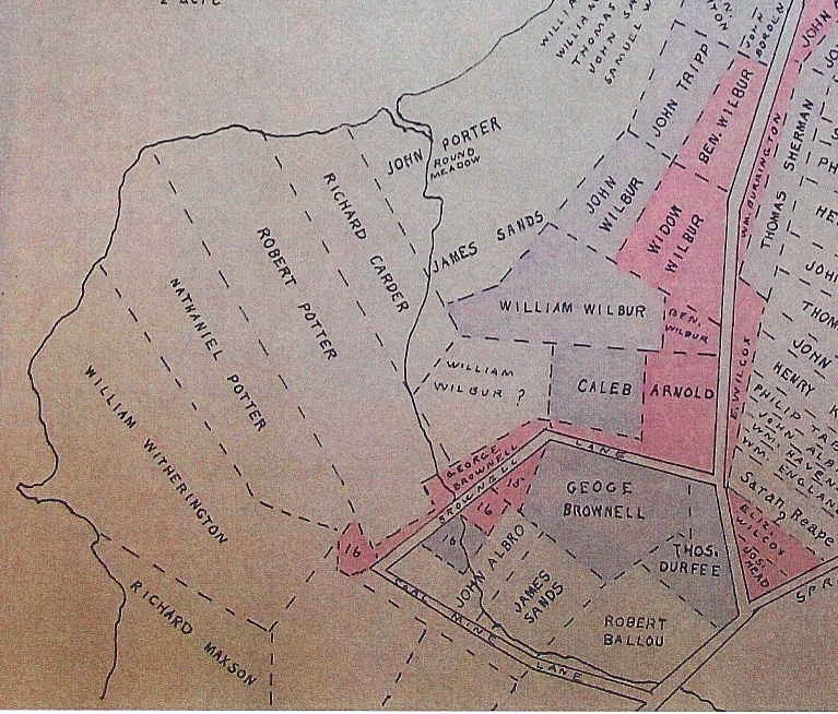 This blog series is based on Portsmouth historian Edward West’s article “The Lands of Portsmouth, RI.” that was published in 1932. West continues his tour down the West Shore by giving us a glimpse of neighborly friction. We start south of Cory’s Lane with land that had been granted to John Porter. In 1675 John had given Thomas Shrieve permission to build on a house lot on his property. Mrs. Shrieve must have had a reputation as a troublemaker because the Town Meeting got involved. “It is consented unto by vote that Thomas Shrieve hath liberty to sett down for the present, upon his wife’s peaceable and good behavior towards her neighbors: until he can more conveniently provide for himself or the town take further orders. Mr. William Baulston, Philip Sherman and Mr. John Briggs are appointed to speak with Shrieve’s wife and William Charles and George Lawton’s wife to give them the best advice and warning for their own peace and the peace of the place.”
