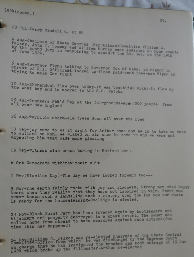 Gloria Schmidt's research notebook of topics in Portsmouth, RI history.
