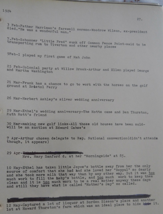 Gloria Schmidt's research notebook of topics in Portsmouth, RI history.