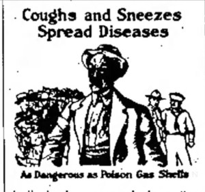 The September 27, 1918 Mercury had more healthy tips. “Live a simple life, do not over-eat, be sure to keep your house well ventilated with keeping room windows wide open. Be careful not to cough or sneeze in a public place, if you must, then always use the protecting handkerchief…. It is hopeful that many are predicting a short-lived outbreak and that the worst is over, but the real serious epidemics of this disease in the past do not warrant such a conclusion.”