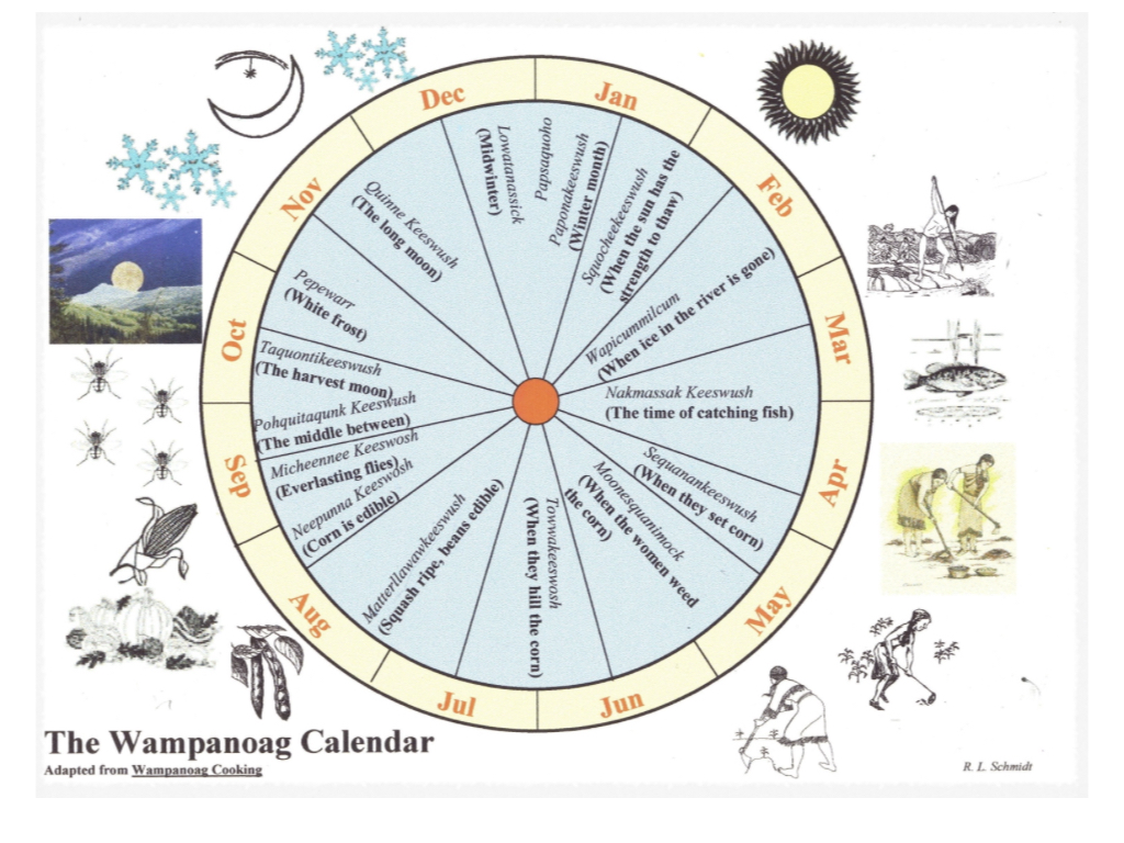 The Pilgrims did not introduce the concept of a harvest celebration. Wampanoag culture celebrated at least five thanksgivings – some believe there was one for each full moon. I came across the celebrations when I was a librarian at Elmhurst School. There were beautiful picture books about “Strawberry Thanksgiving” and the origins of the Cranberry Thanksgiving. Strawberry Thanksgiving is a summer celebration when the first berry ripens. Green Bean and Green Corn Harvest come in mid summer. Cranberry Thanksgiving celebrates the ripening of the last wild berry. Some Wampanoag traditions list a maple syrup harvest celebration in the late winter/early spring. There was definitely a Thanksgiving celebration when the last crops were harvested and that would include singing, dancing and sharing food.