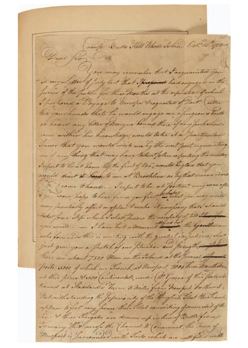 In letter dated August 26th, 1780 from Camp Butts Hill, Colonel John Jacobs writes to Major General Heath: