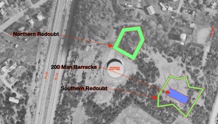 Lehigh Hill Engagement (Durfee’s Hill): General Nathanael Greene held the right flank of the American Army, along the right-wing stood a small artillery redoubt. This was a vital position for both sides. The 1st RI Regiment (Black Regiment) was under the direct command of Major Samiel Ward who was commanded by Col. Christopher Greene, a distant cousin of Nathanael Greene. German Captain Malsburg was ordered to attack the hardened position. The first attack failed. The 1st RI Regiment held its ground. The Hessians tried multiple times to take the position. The Hessians tried to flank the position, this also failed. On the third attempt, the 2nd RI Regiment supported the 1st RI Regiment. As the 2nd RI Reg. approached the redoubt the Hessians were attempting to climb the walls. All together Greene had about 1,600 soldiers fighting on the Lehigh Hill. Units included 1st RI Regiment, 2nd RI Regiment, Livingston’s 1st Canadian, Sherburne’s, and Webbs Regiments. More than 800 Continentals including Laurens advance guard and Jacksons’ Detachment participated. The American line veered SW at a 45-degree angle from Butts Hill to Durfee’s Hill making the American fire even more effective. Col. Henry Jackson’s men fixed bayonets and charged into the Hessian Line, turning the tide of the battle. The Battle was over at 4 pm. The Hessians retreated to Turkey Hill. Both sides exchanged cannon fire throughout the night. Cannon fire was also exchanged between Turkey Hill and the Butts Hill Fort.