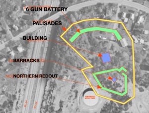 Butts Hill Fort (or Windmill Hill Fort) evolved along the way. The British called this area Windmill Hill because it was a traditional site for a windmill. The Americans called this area “Butts Hill” after the John Butts family that held the land when the war began. The outlines you see at the fort date from the improvements made by the French and Americans in 1780 to 1781. It is at this point that the fortifications at Butts Hill became Butts Hill Fort.