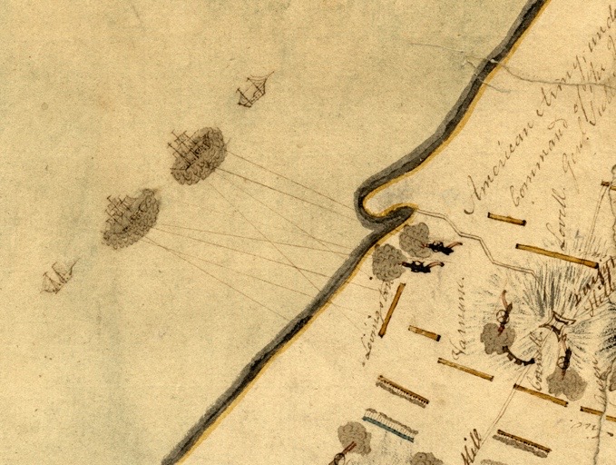 The French brought engineers and soon after they landed they began to repair the defenses that the British had destroyed before they left. These fortifications were remodeled and guns were mounted. In a letter to a friend, Militiaman Dr. John Goddard commented: “…there are about 7500 Men on the Island at the Several ports, 5000 of which are French, at Newport, 2000 Three Months Men (militia), at this place and 500 Continentals, under Col. Greene of this state….Notwithstanding the Superiority of the English Fleet the French appear to feel very secure. Their Fleet consisting of seven sail of the Line & three Frigates are drawn up in line of Battle from Tomany Hill across the Chanel to Conanicut. The Town of Newport is surrounded with Forts which are well filled with Cannon, on the whole I believe there is no Reason to fear an Attack from the Enemy this season.”