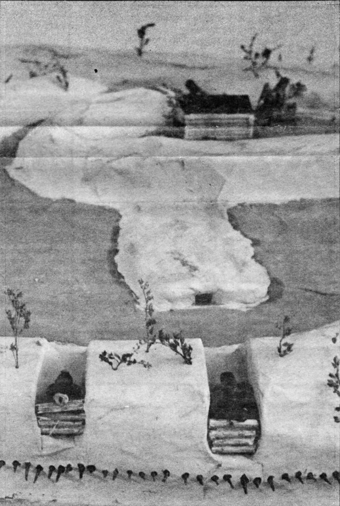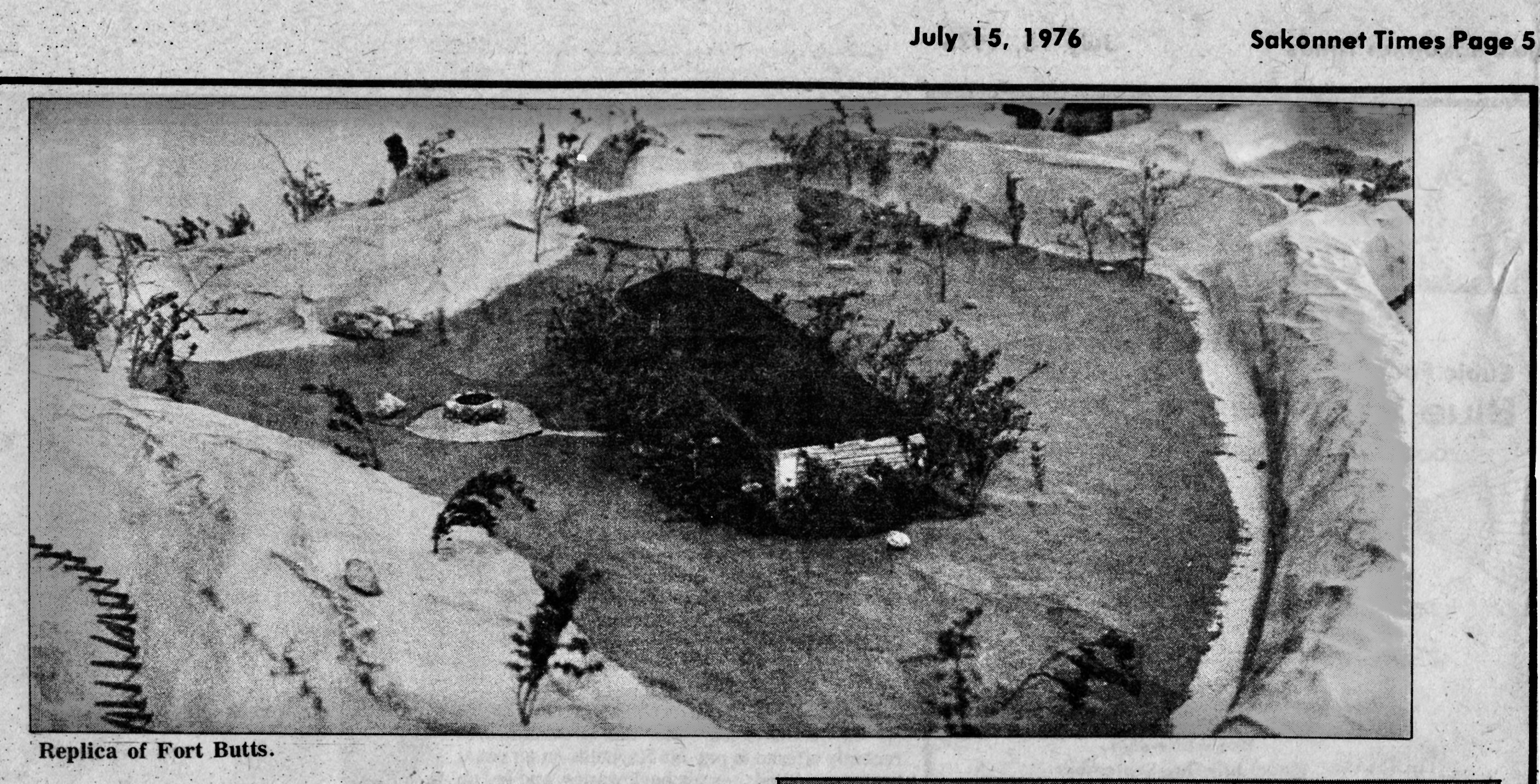 It is hard for us to imagine what Butts Hill Fort looked like. In the 1970s four Portsmouth High School Students tried to create a model of the fort. It was part of a project for an applied math class. One of the students was David Boscarino whose father was spearheading an effort to save the fort. The others were Robert Keshura, Ron Linhares and Brian Martineau. The model shows the abatis or tree branches arranged about the mote, the barracks and the cannon positions. Images of the model appeared in the July 15, 1976 issue of the Sakonnet Times.