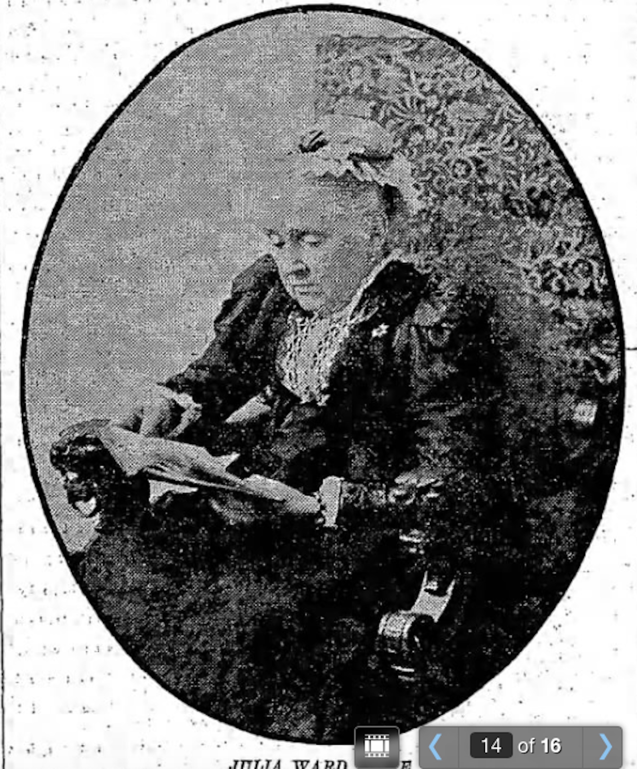 Julia Ward Howe had a famous ancestor who “served in Rhode Island.” She always felt at home in Rhode Island. She summered in Portsmouth until her death in 1910. We always include her maiden name “Ward” when we refer to her. Julia was a descendent of Governor Samuel Ward (he was also a delegate to the Continental Congress). Samuel Ward Jr, her grandfather, was one of our great heroes in the Battle of Rhode Island. That day he commanded the 1st Rhode Island Regiment (known as the Black Regiment). We have a short glimpse of what happened that day from his diary.
