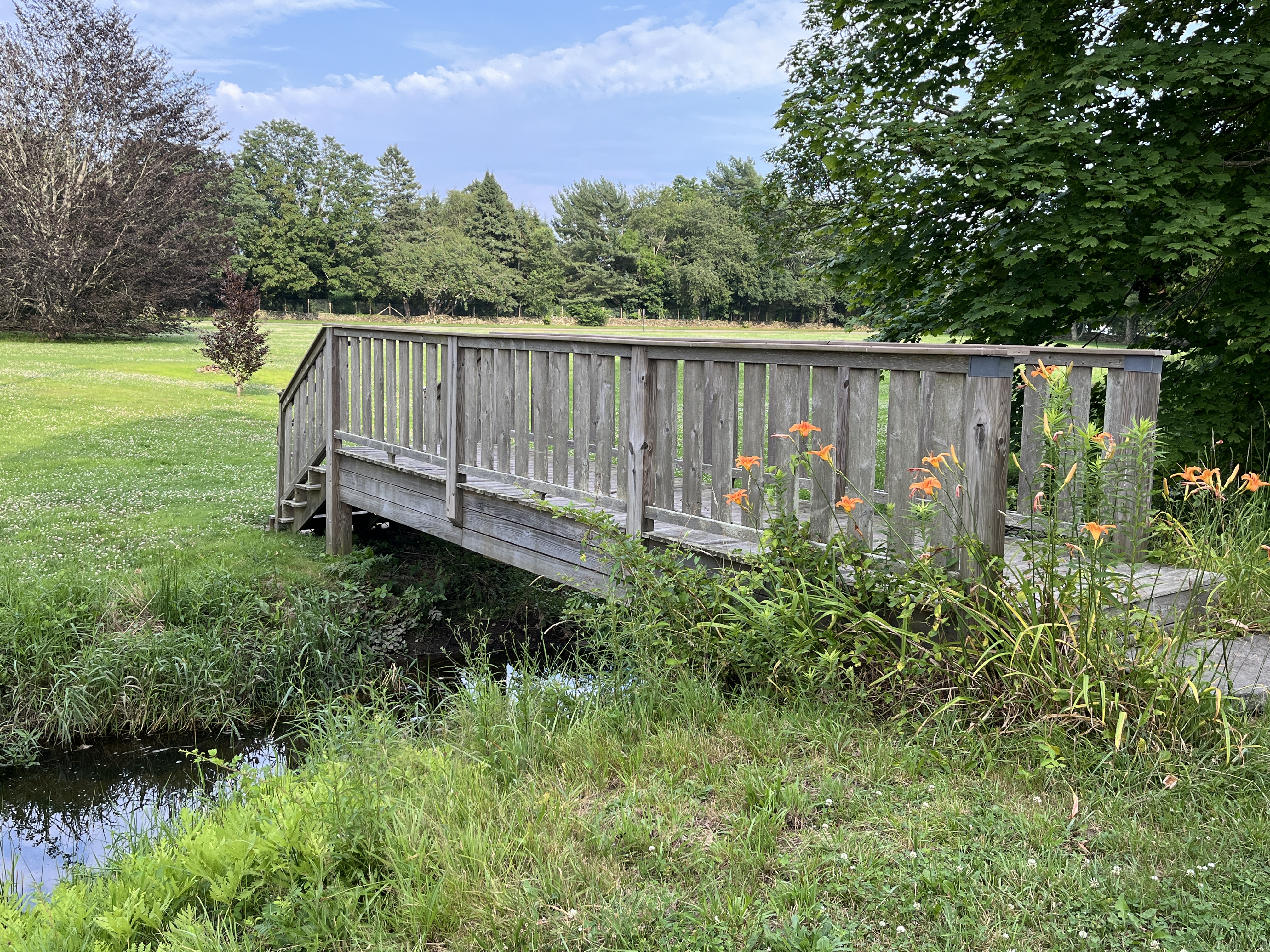 - You come out of the woods to “Over in the Meadow/Field.” When we did our habitat study the fields were allowed to grow tall so we could find flowers and seeds and look for signs of animals. Today it is mostly mowed. This field is a reminder that it used to grow crops to feed the 25 families who lived and worked on the farm.