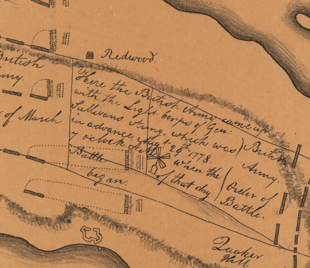 ” ‘Eight days had elapsed since the commencement of the work, and no thought had yet been given to fortifying the point of the island which should have 1st thought of. This is the point of Howlands Ferry, and Monsieur de La Fayette decided to occupy it better than it was at the time. There were two bad redoubts, which were connected and formed into a respectable fort, which had not been finished, the fort and another in the shape of a star, which protected the ferry together with a battery on the mainland assured communication with the mainland, which was essential for relief or retreat in case of misfortune.'”