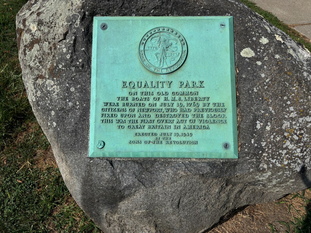 The burning of the barge and the boat the accompanied the Liberty are commemorated with a plaque in Newport today. According to the Rhode Island Republican 1835 article “The Boats were burned on the Common, opposite the Pound. They were run up the Long Wharf, then up the Parade, and through Broad Street by the populace…”