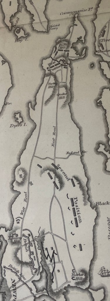 Found in Malsburg’s diary was a poem about the Rhode Island Campaign. There are mentions of d’Estaing, Pigot, Clinton. Ludwig is French King Louis. The term “Jonathan” was a commonly used to denote someone from New England. Hancoc refers to John Hancock. Hancock was actually at the Siege of Newport, but left before the Battle.
