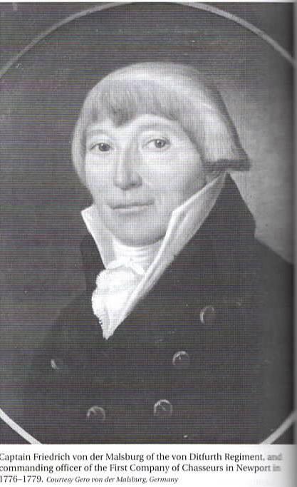 Malsburg served on Aquidneck Island who whole of the British Occupation from 1776-1779. He wrote a diary which helps us understand his life on Aquidneck Island. There wasn’t a Jager unit (skilled hunters and marksmen) so two units were formed from Chasseur companies (rapid movement unit). Captain Friedrich von der Malsburg of the Ditfurth Regiment commanded the first company and Captain August Christian Noltinius of the von Bunau Regiment headed the second. These men were armed with musket, bayonet, and sabre. They were on round the clock alert in readiness for special assignments. These rapid advaance men went up West Main Road ahead of the other troops and challenged the American pickets.