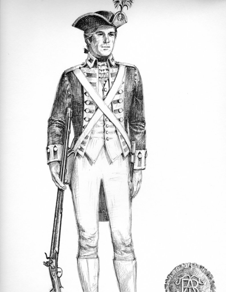 Col. Israel Angell: Angell came from one of the founding families of Providence. He served throughout the Revolutionary War. He was a major in Hitchcock’s Regiment at the beginning of the war and served with that regiment at the Siege of Boston. As the Continental Army was organized in 1776, Angell was part of the 11th Continental infantry. When Hitchcock was appointed brigade commander, he commanded the regiment. His regiment was re-named the 2nd Rhode Island Regiment on January 1, 1777. He was promoted to lieutenant colonel and shortly after to Colonel. He commanded the regiment following the death of Hitchcock. Angell was an experienced soldier who served at Valley Forge, the Siege of Boston, Brandywine, Red Bank, Monmouth and then the Battle of Rhode Island. At the Battle of Rhode Island he commanded 260 men. American General Nathanael Greene ordered Colonel Israel Angell’s 2nd Rhode Island Regiment to support Ward’s 1st Rhode Island Regiment. They were able to reach the key artillery redoubt before the British forces. He served in New York, but he retired from the army on January 1, 1781, after the two Rhode Island regiments were consolidated into a single regiment known as the Rhode Island Regiment.