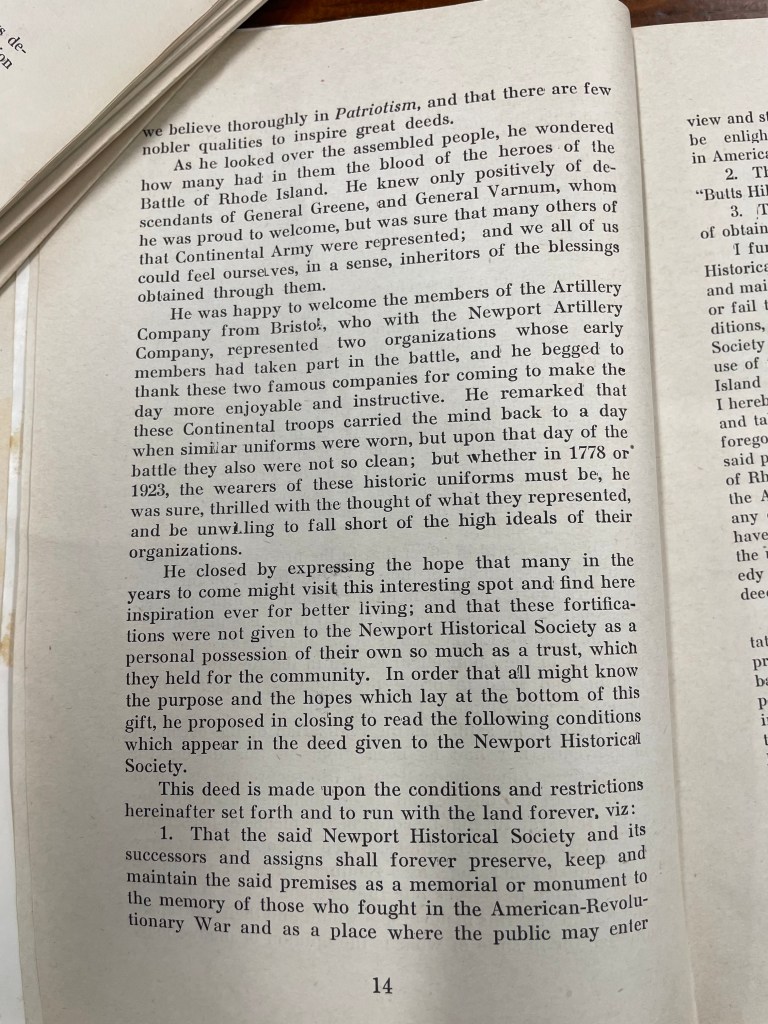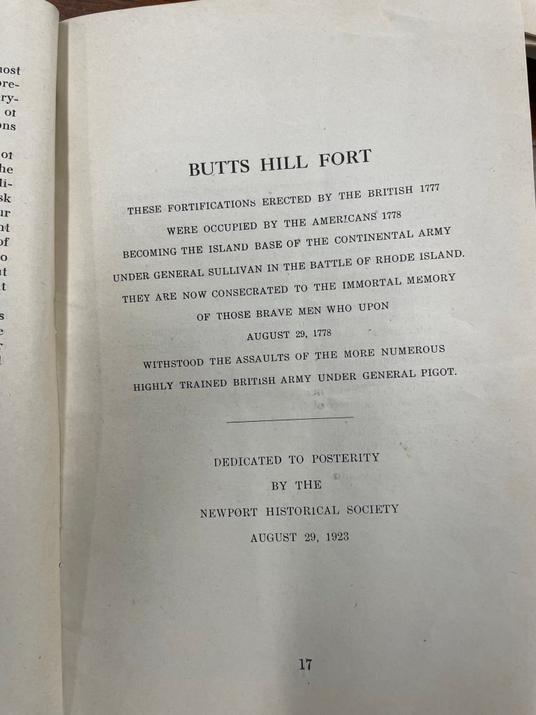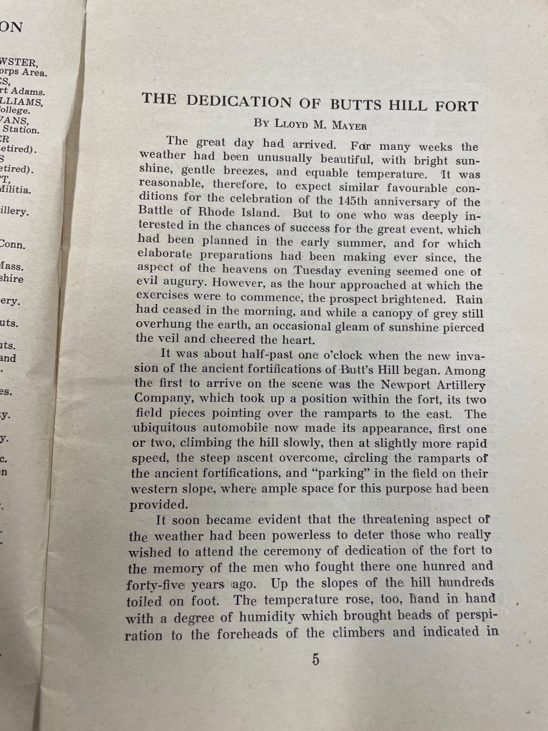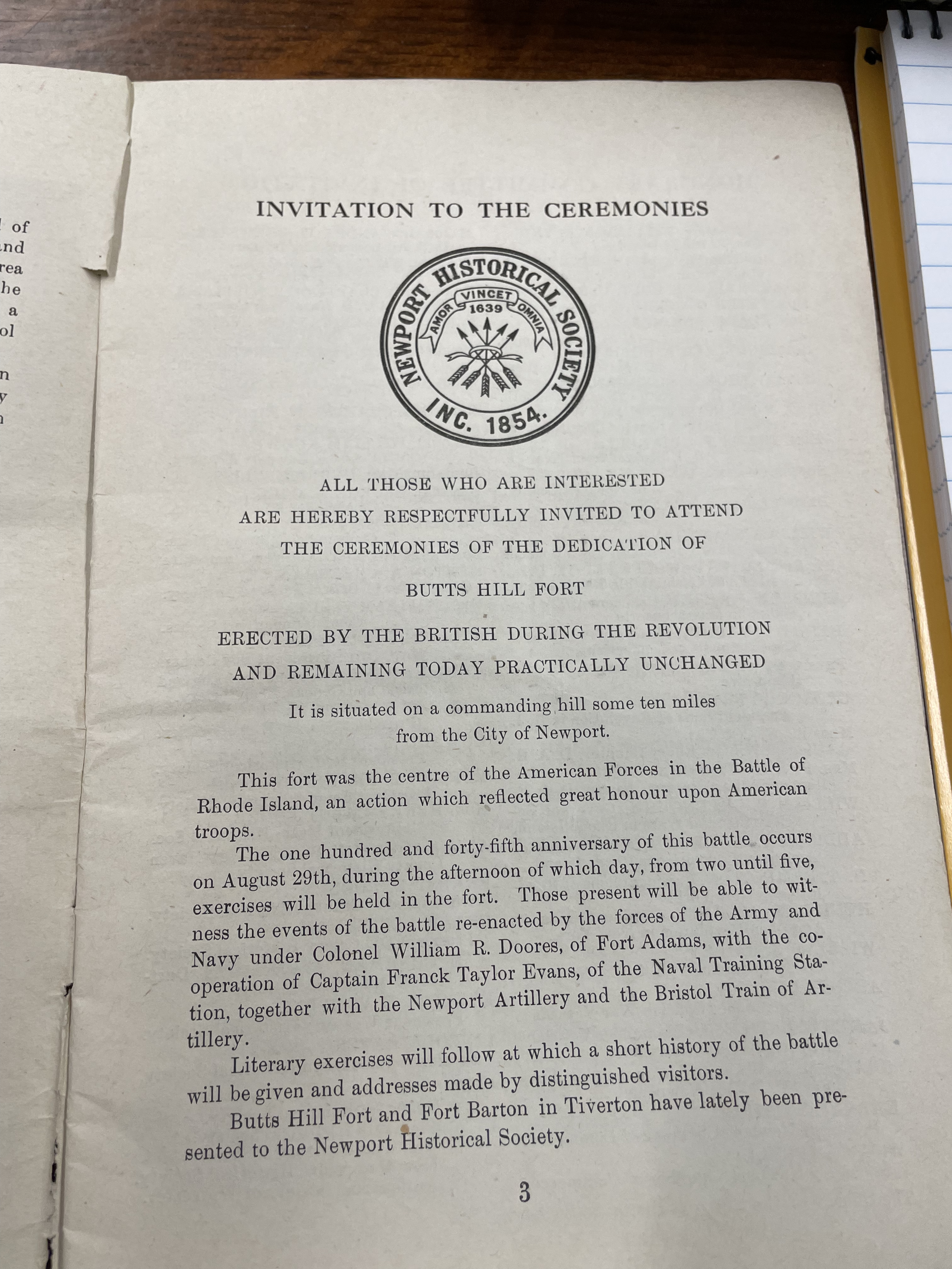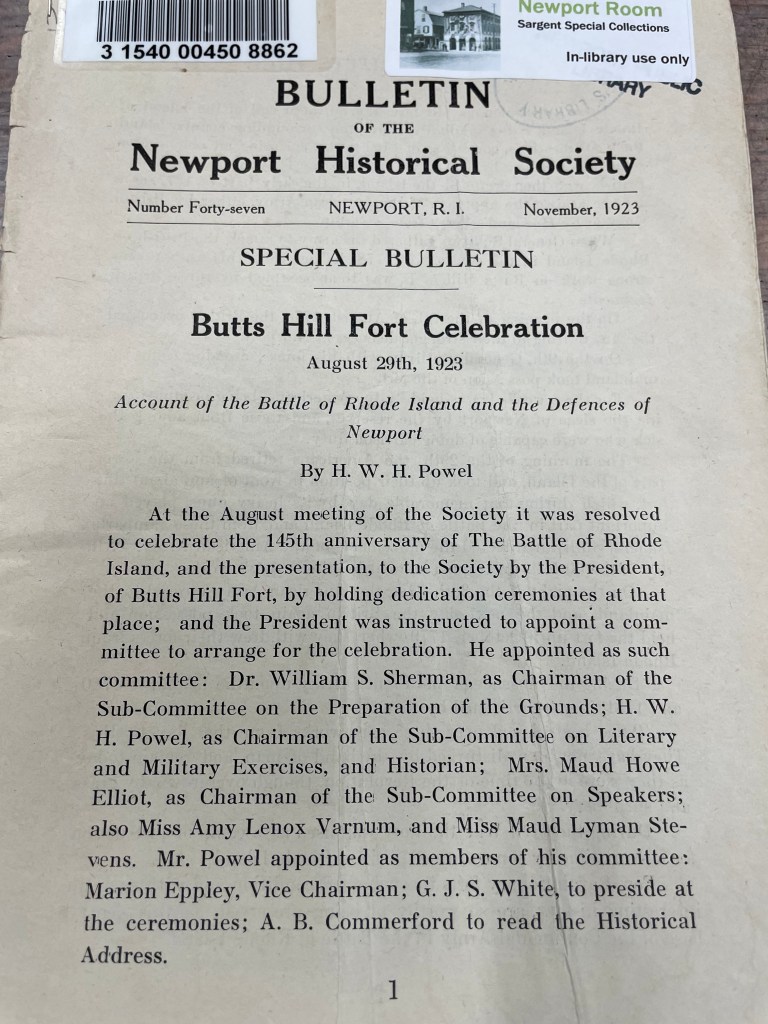 Butts Hill Fort Resources: Newport Historical Society 1923 Dedication of Fort and Celebration
