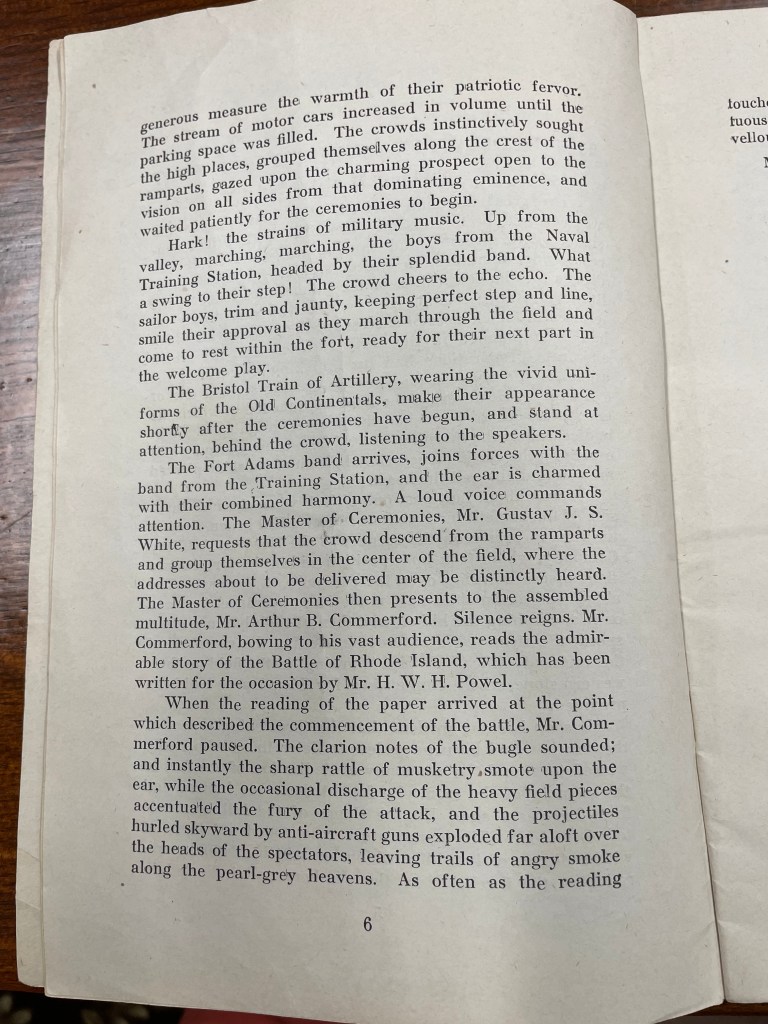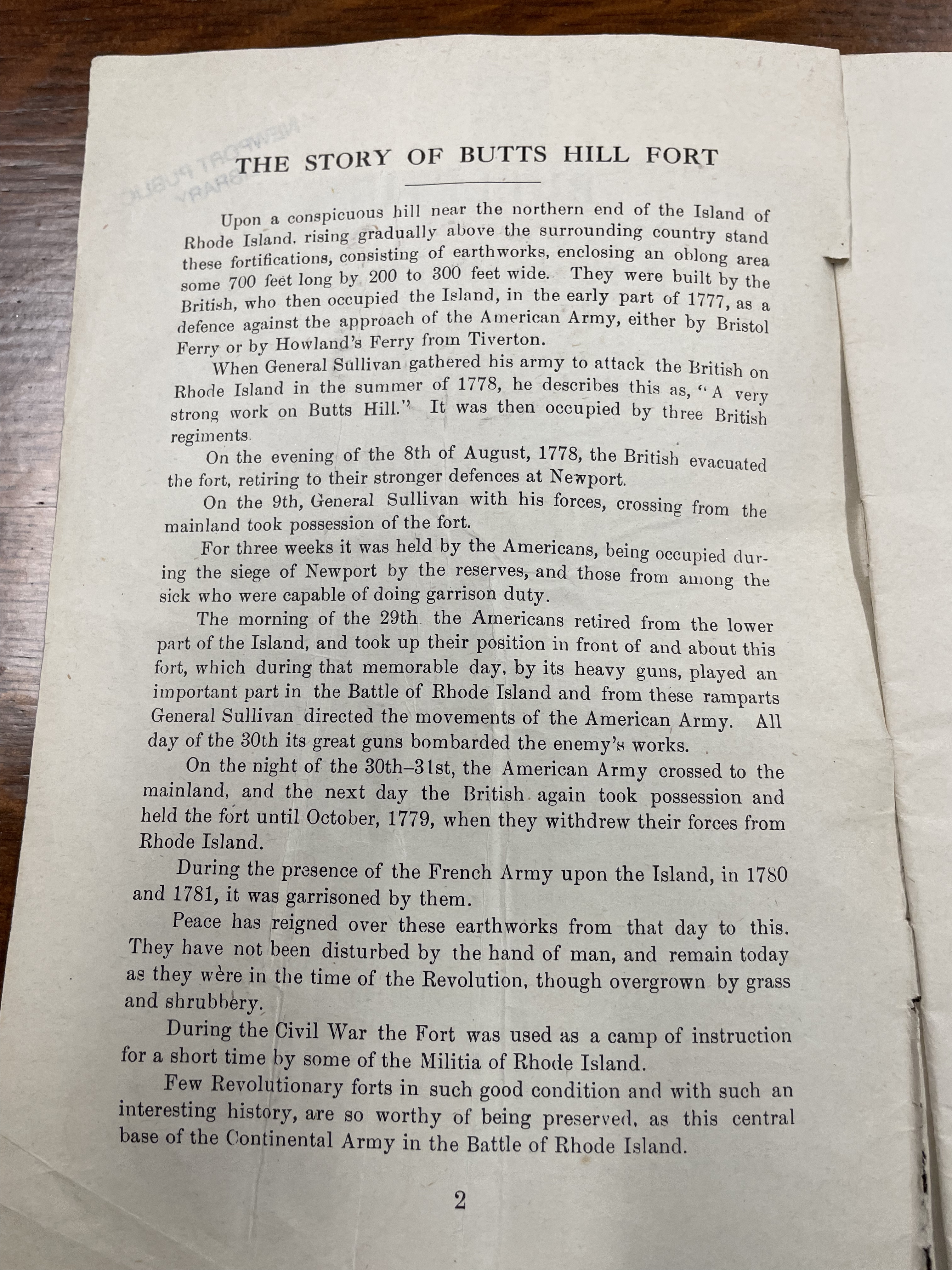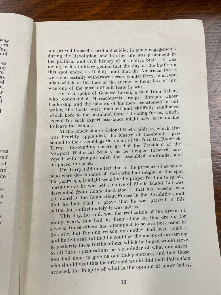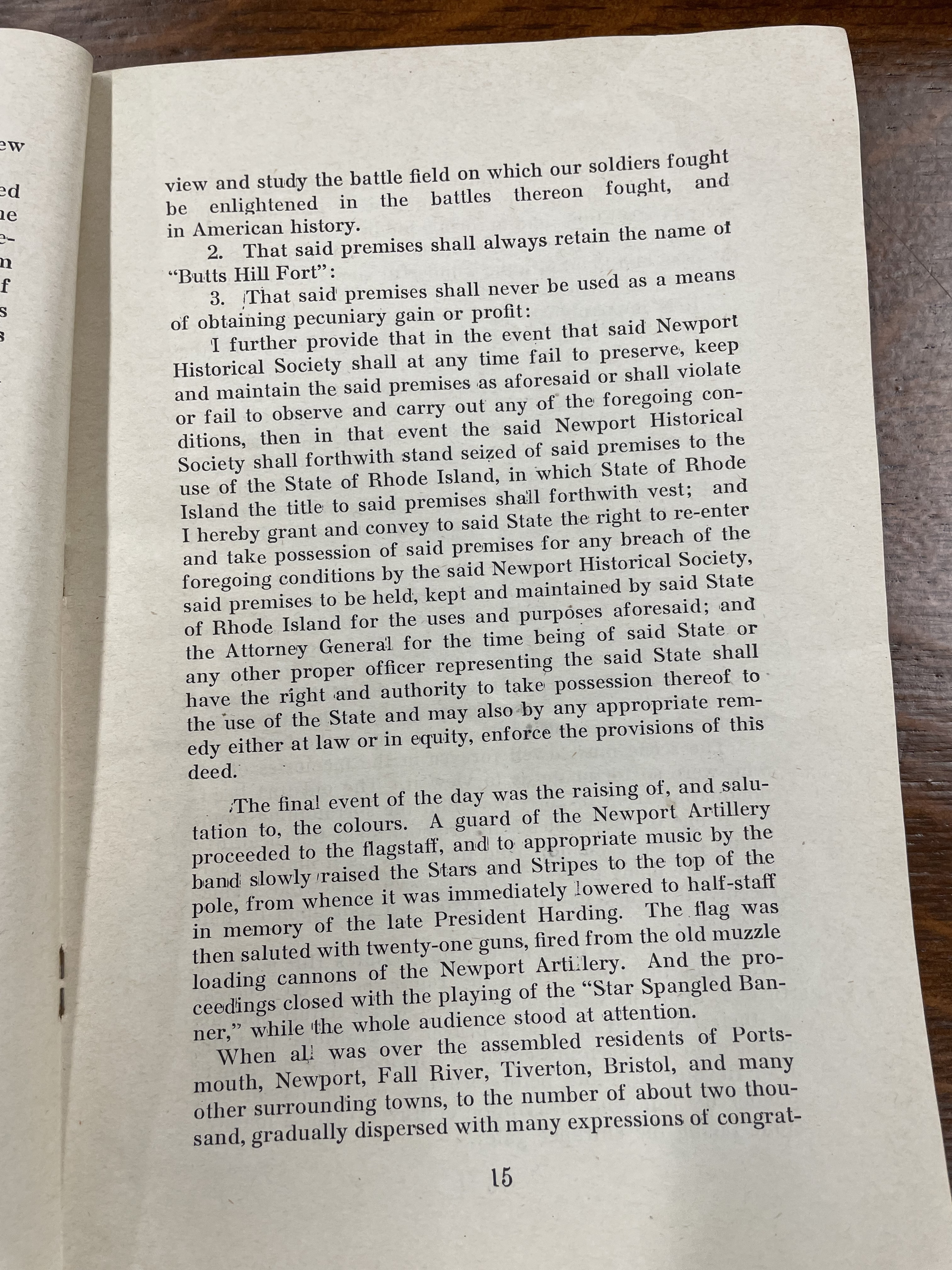 Butts Hill Fort Resources: Newport Historical Society 1923 Dedication of Fort and Celebration