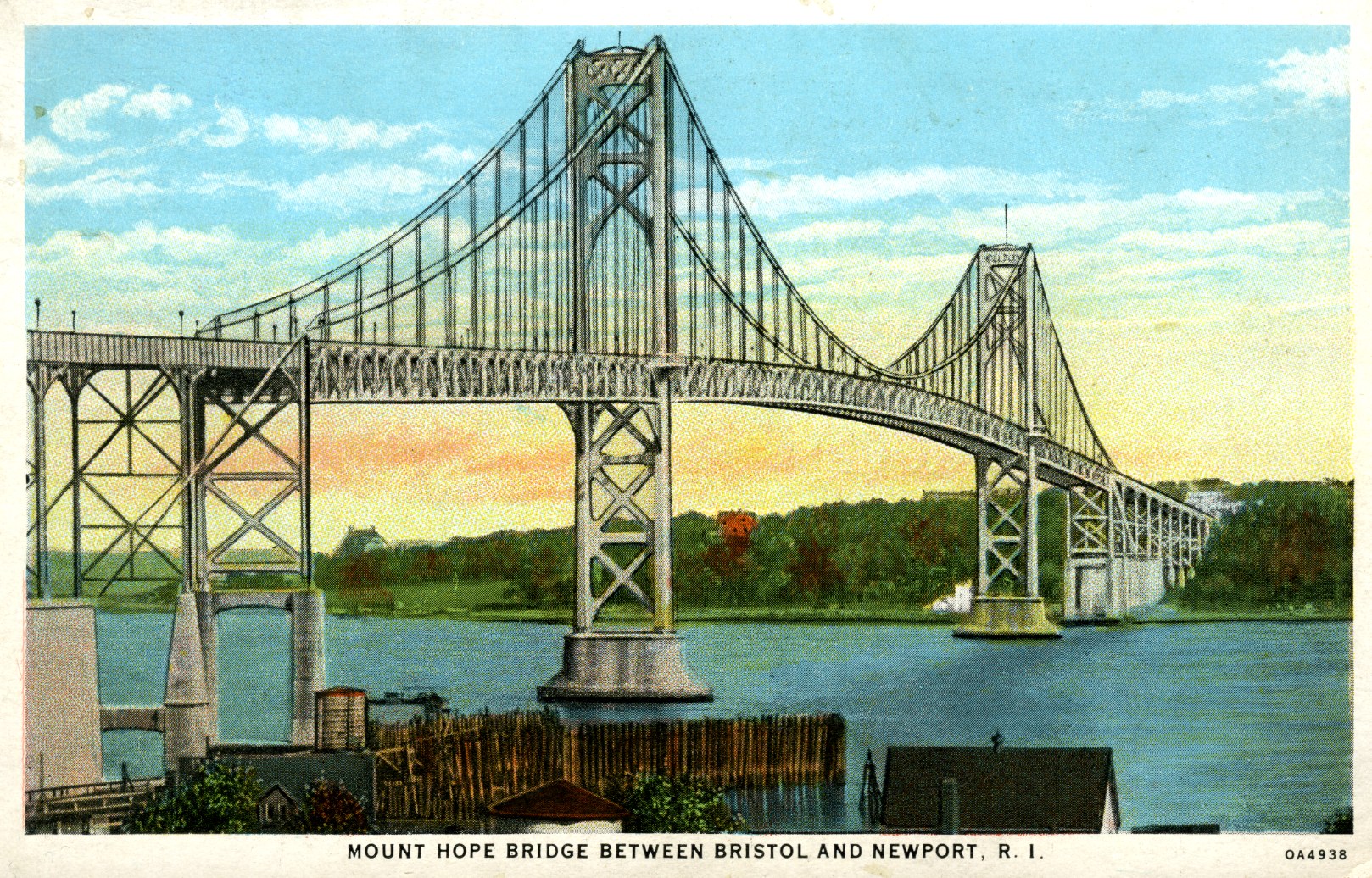 As automobiles became more common, the Bristol Ferry became less practical. The state of Rhode Island would not build a bridge, but private investors began construction in 1927. At a cost of 4 million dollars, the 6,130 foot suspension bridge was the longest bridge in New England when it opened on October 24, 1929. Opening parades and celebrations included up to 25,000 cars.