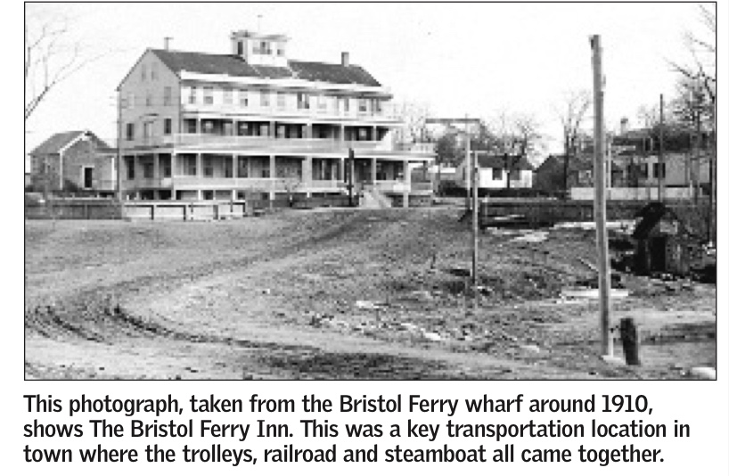 An article by the Historical Preservation and Heritage Commission booklet on Portsmouth stated: “About 1850, a large hotel with accommodations for up to 50 people, was built, and, for the next three-quarters of a century or so, Bristol Ferry was a thriving place, with the hotel, a wharf, a store, summer cottages, a railroad station on the Old Colony line between Fall River and Newport, a telegraph office and post office.”