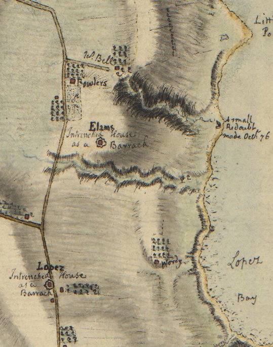 The farms here belonged to Bartholomew West, Samuel Hutchinson, and John Sanford. On the west side of the road was the Long Swamp farm of Thomas Lawton, made